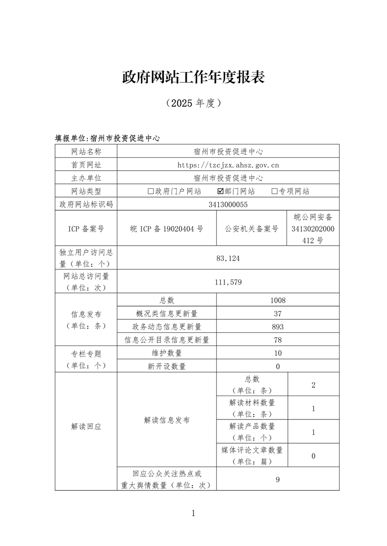 宿州市投资促进中心2025年度政府网站工作报表 |